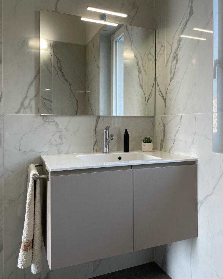 L’apertura con gola e le finiture materiche sono i punti forti di queste composizioni di Baxar Bagni. L’arredo è sapientemente accostato a luci e specchi che risaltano gli ambienti in cui sono collocati.