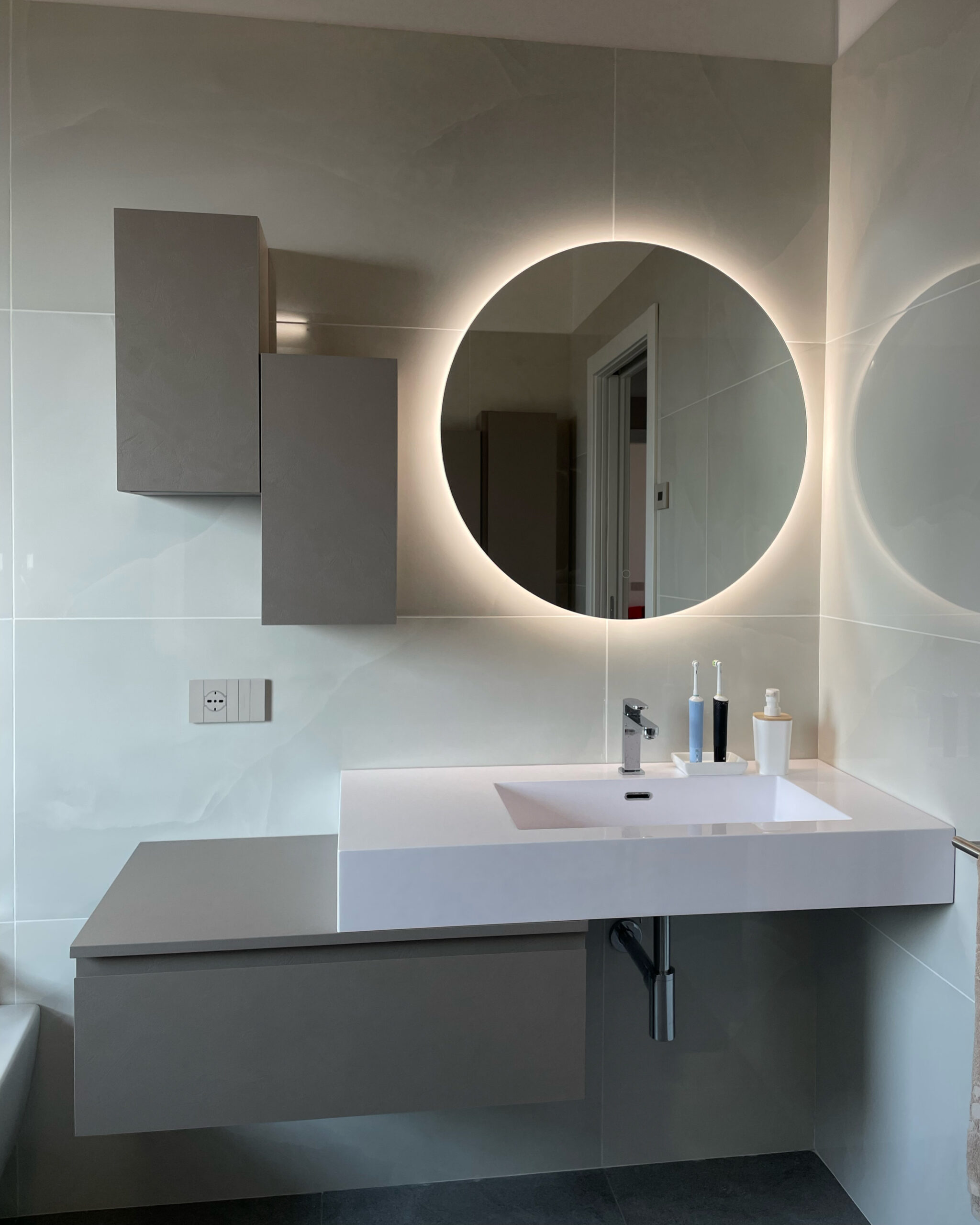 L’apertura con gola e le finiture materiche sono i punti forti di queste composizioni di Baxar Bagni. L’arredo è sapientemente accostato a luci e specchi che risaltano gli ambienti in cui sono collocati.